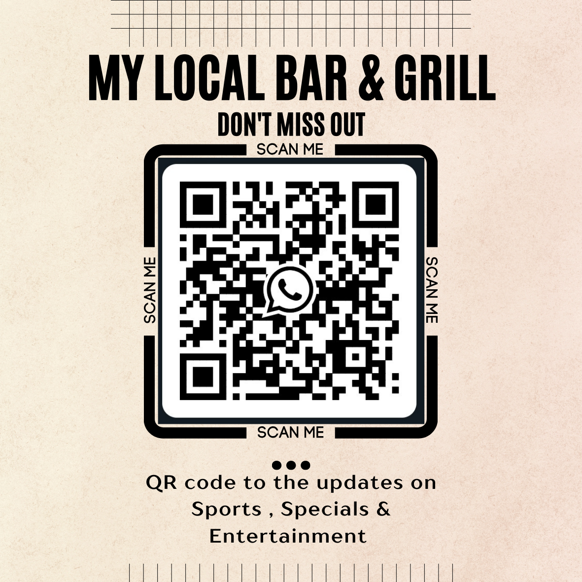 - Scan our QR code to join our WhatsApp group and stay up to date with the latest in sports, specials, and entertainment.